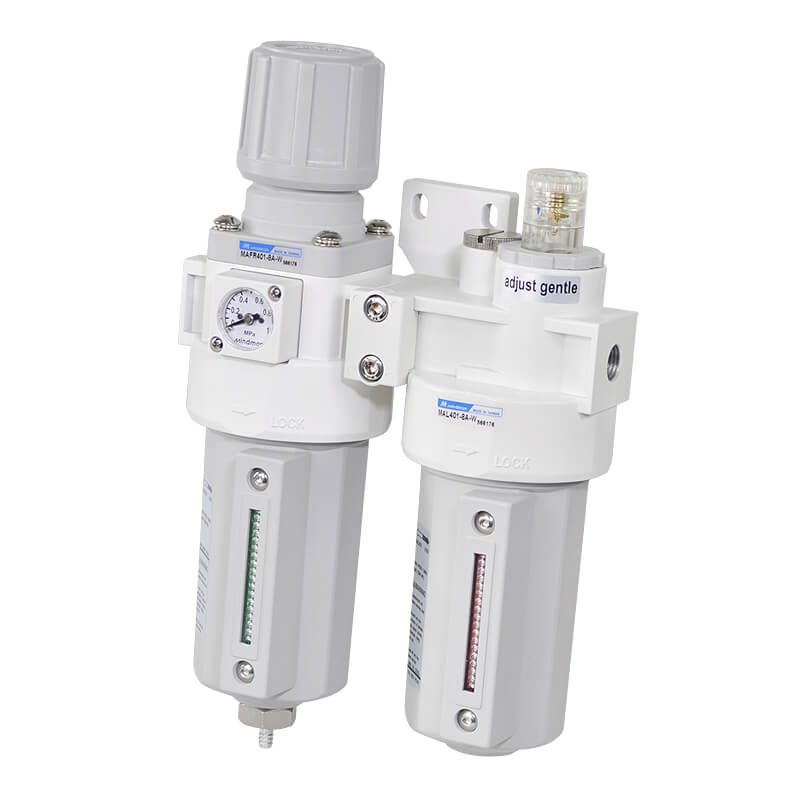 Components : MAFR401, MAL401, Port size: 1/4, 3/8, 1/2, Operating pressure range : 0.05~1.5 MPa, Proof pressure : 2 MPa.